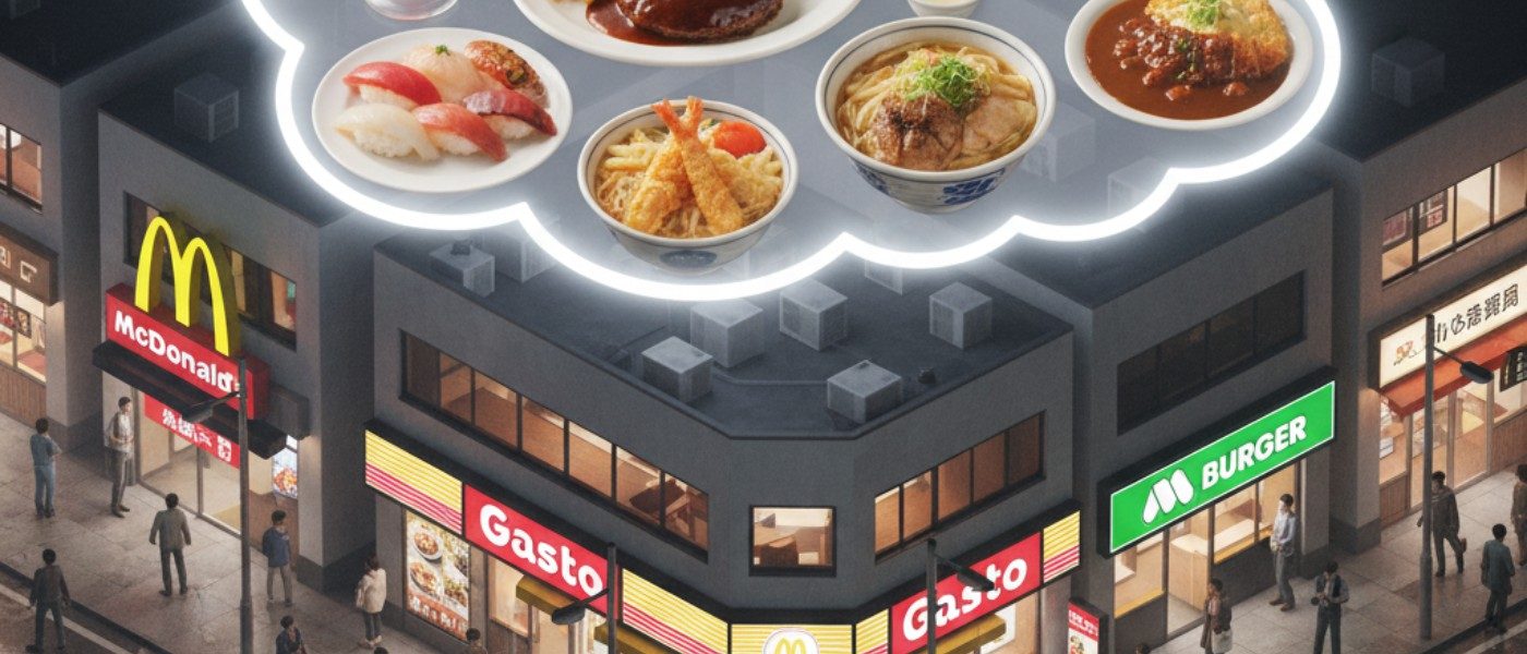 前三名競爭白熱化:第三名「吉野家」憑百年牛丼 DNA 與「一分鐘上桌」速度感贏得記憶戰;第二名「麥當勞」靠 2,900 家店+千家 24 小時門市+月見漢堡限定口味,穩坐速食龍頭。至於問鼎冠軍的「Gusto」,則以平均客單不到 1,000 日圓、從早餐到宵夜的全時段菜單,以及 1,300 家高密度門市,在「想到外食連鎖店=Gusto」的心智中完勝!