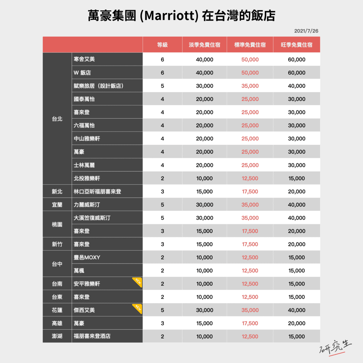不知不覺萬豪集團 (Marriott)在台灣的飯店已經滿 20 間啦!距離上次整理這張表格,已經兩年了,也該是時間來更新一下。