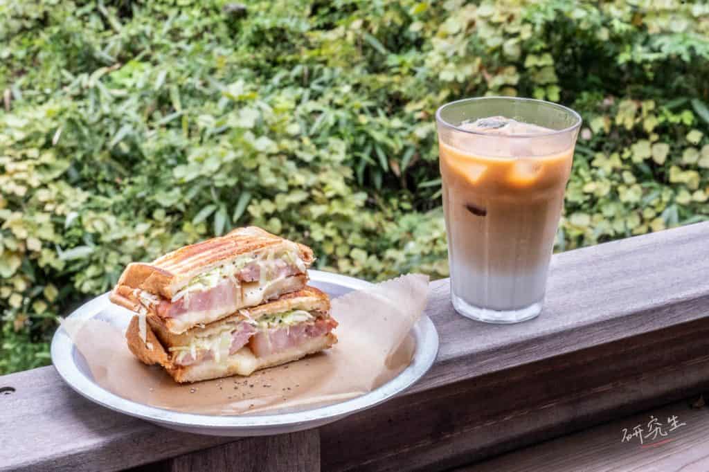 餐點以三明治為主,我點了一份培根高麗菜起司三明治。端上來我才發現是厚切培根,搭上高麗菜的口感超棒,外面吐司有點類似帕尼尼的烤法,非常經典的日本三明治。
