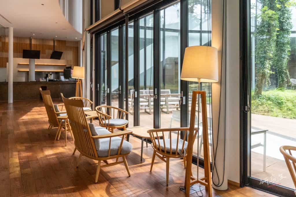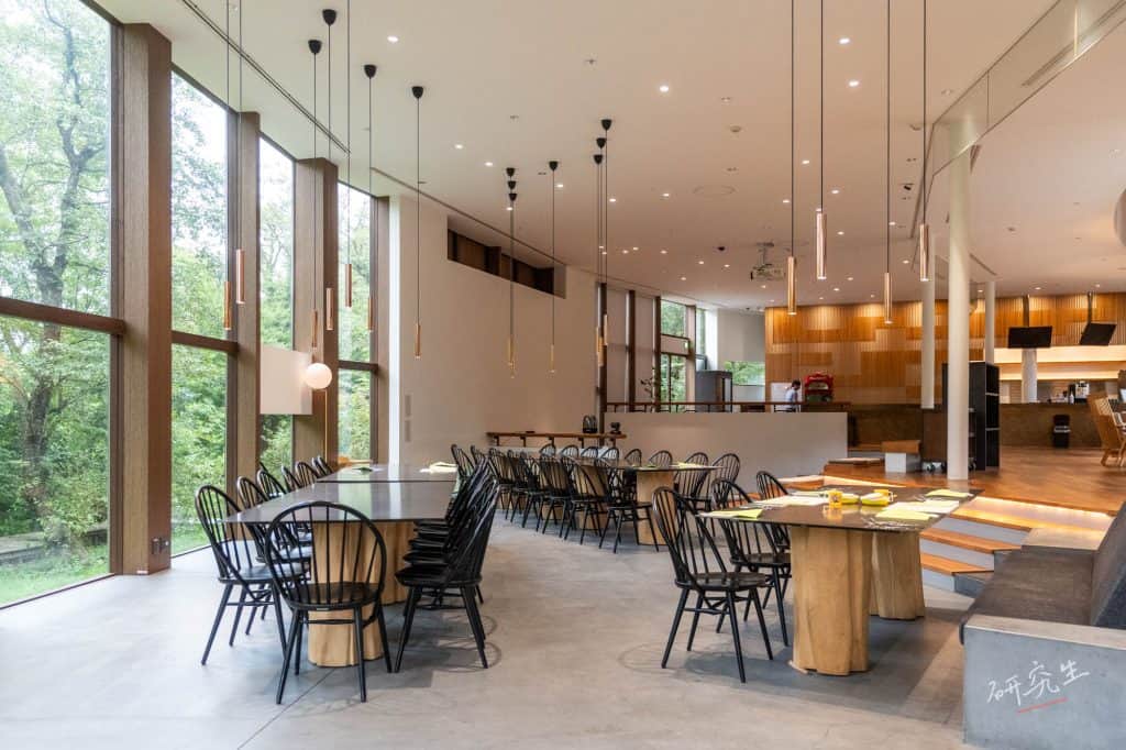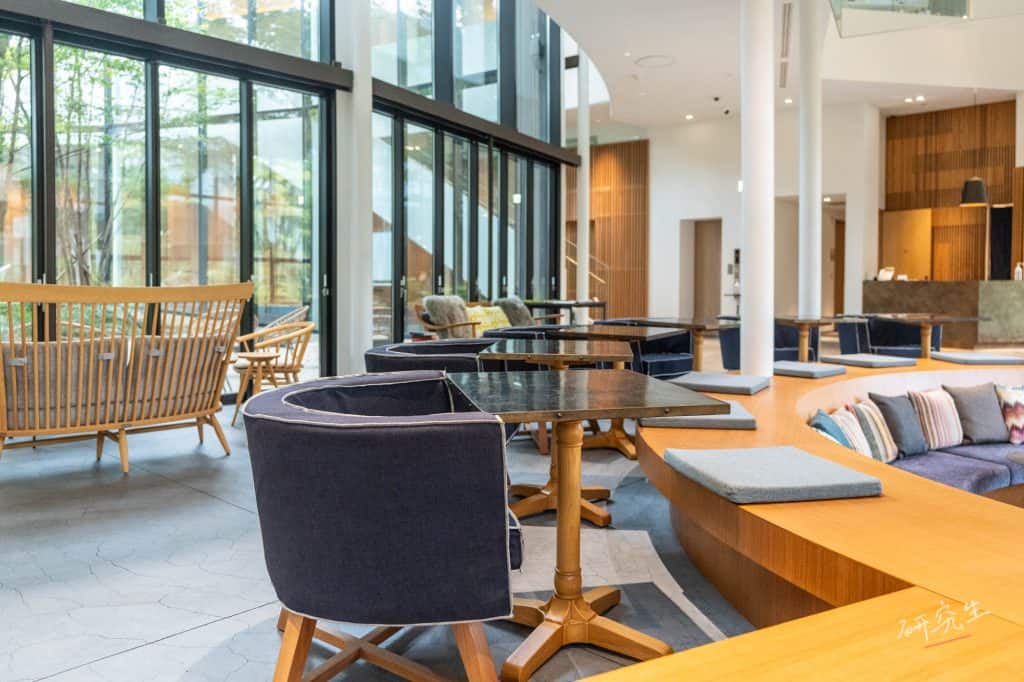 公共區域有非常多不同的設計,有個人位子,吧台,還可以坐在窗邊看著外面的園景。另外還有一個階梯座位,可以在那邊看影片。