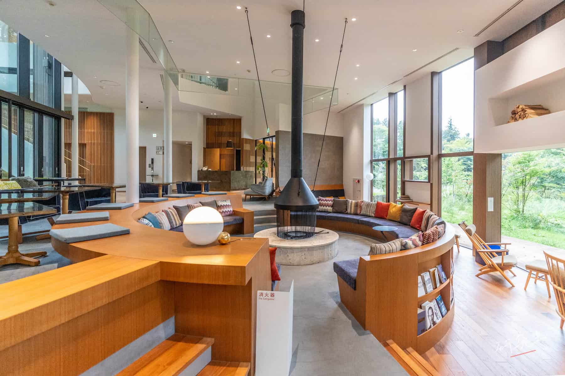 箱根萊姆度假飯店的大廳非常氣派。整個氣氛真的就像是一個度假的別莊,非常悠哉。大廳的正中央有一個很像壁爐的造型,可以一群朋友圍在旁邊聊天,另外還有各種座位可以觀賞飯店景觀。
