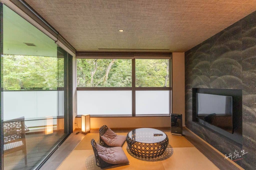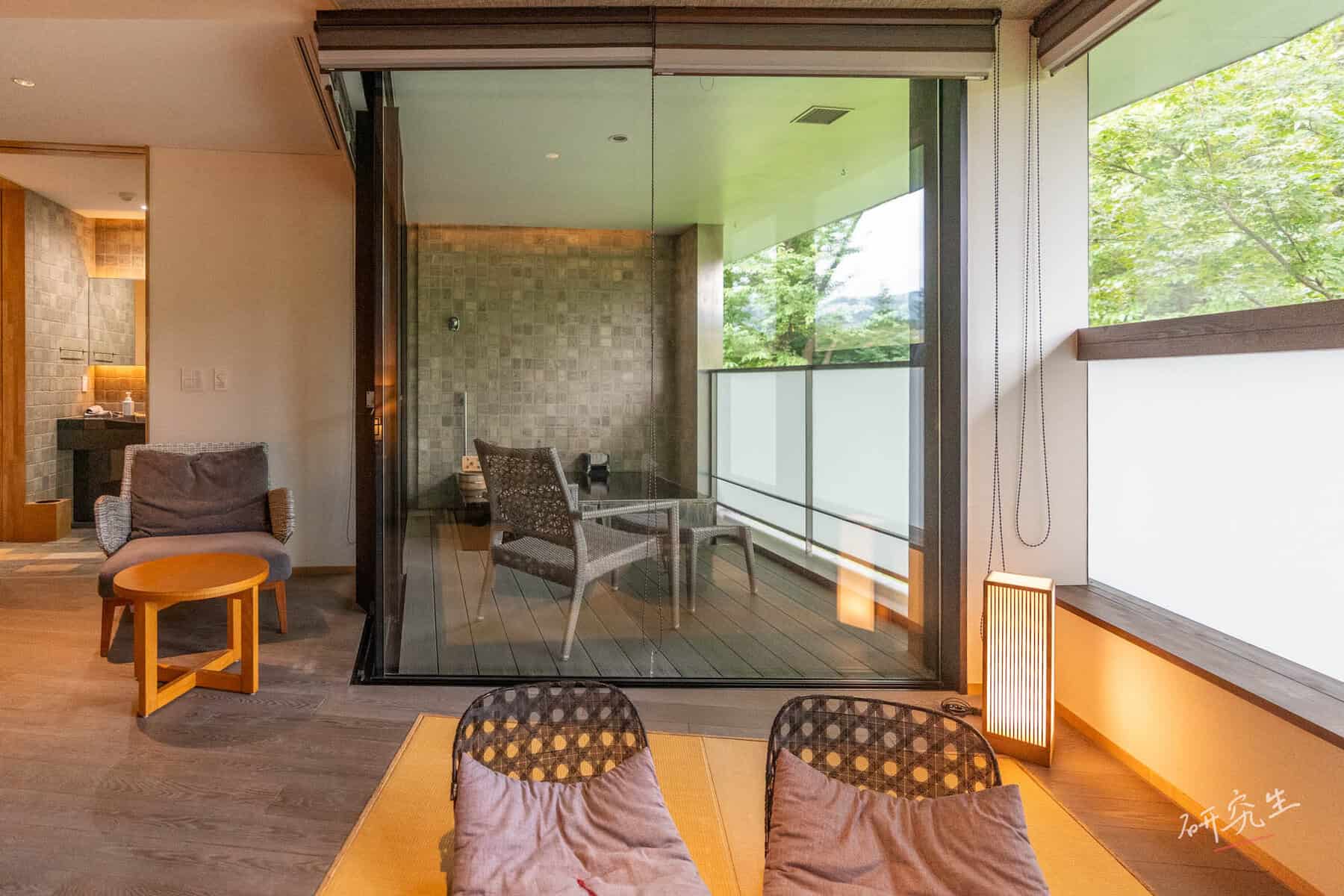 溫泉套房相當不錯,空間大,而且露天溫泉的空間不但可以看景,還有椅子可以休息。在週末房價可以高達 8 萬日幣的情況下,以 HafH Coins 入住大約 4 萬多日幣的成本入住,相當划算。非常適合朋友一起出遊,在箱根感受旅行中的日常感。